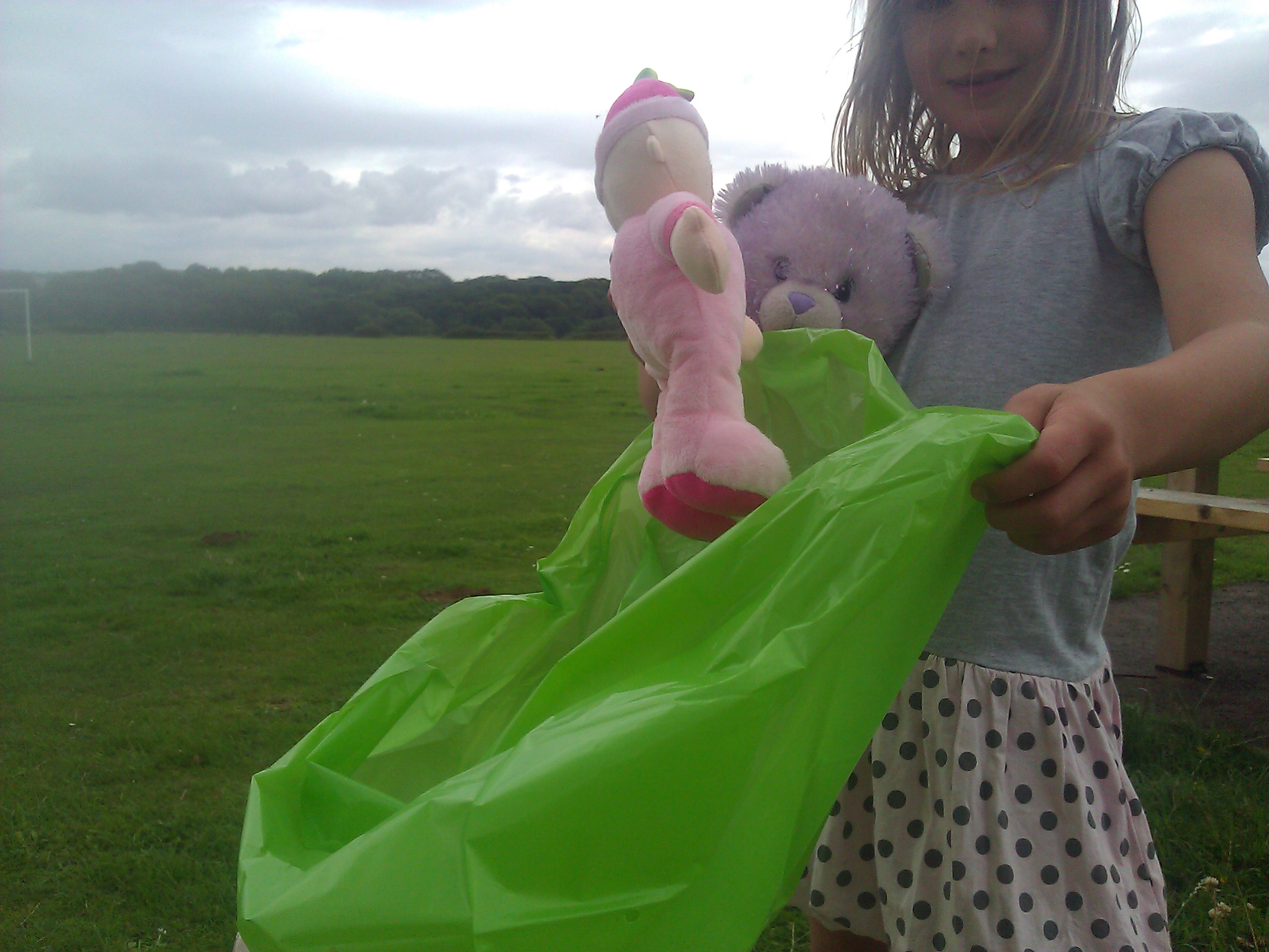 Our cuddle buddies then had great fun playing games and dancing on the picnic table before my friends were put into a green bag to be given to Oxfam to share a new life with some more cuddle buddies.
