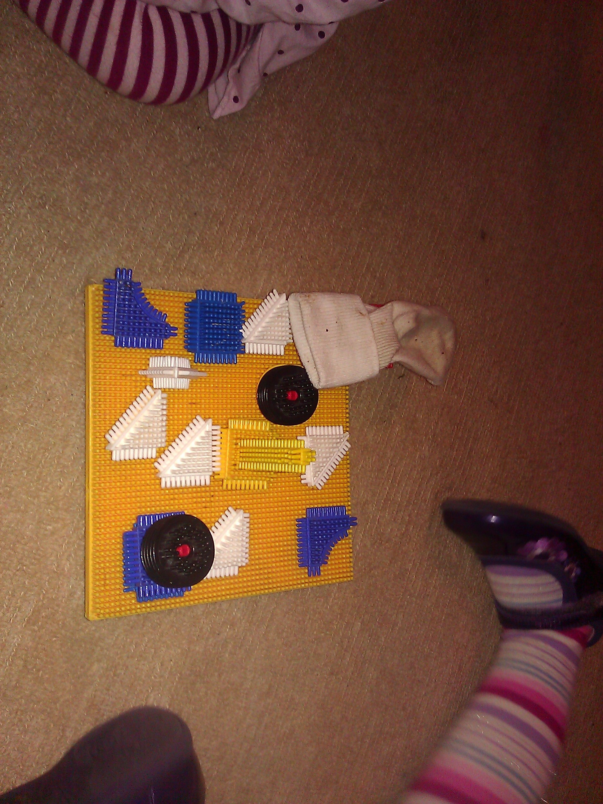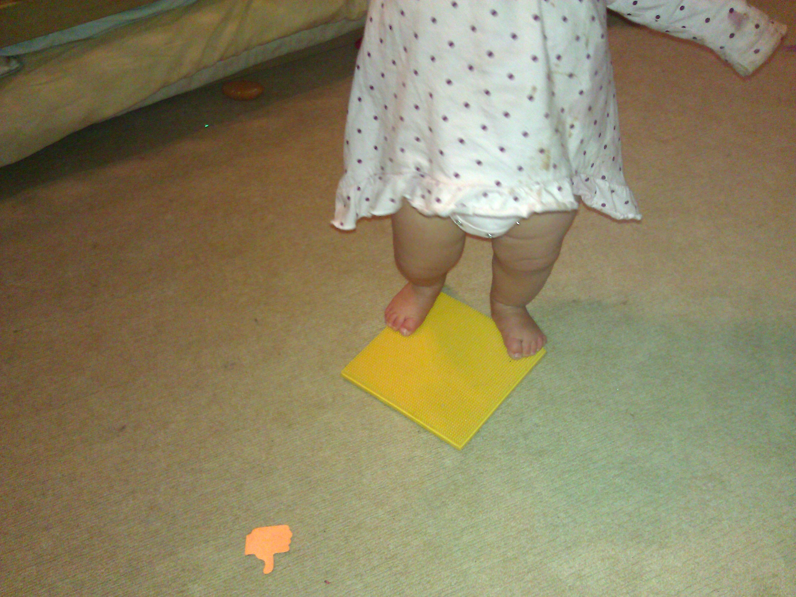 Later she found the board and enjoyed discovering the texture with her bare feet, stepping on and off and laughing.