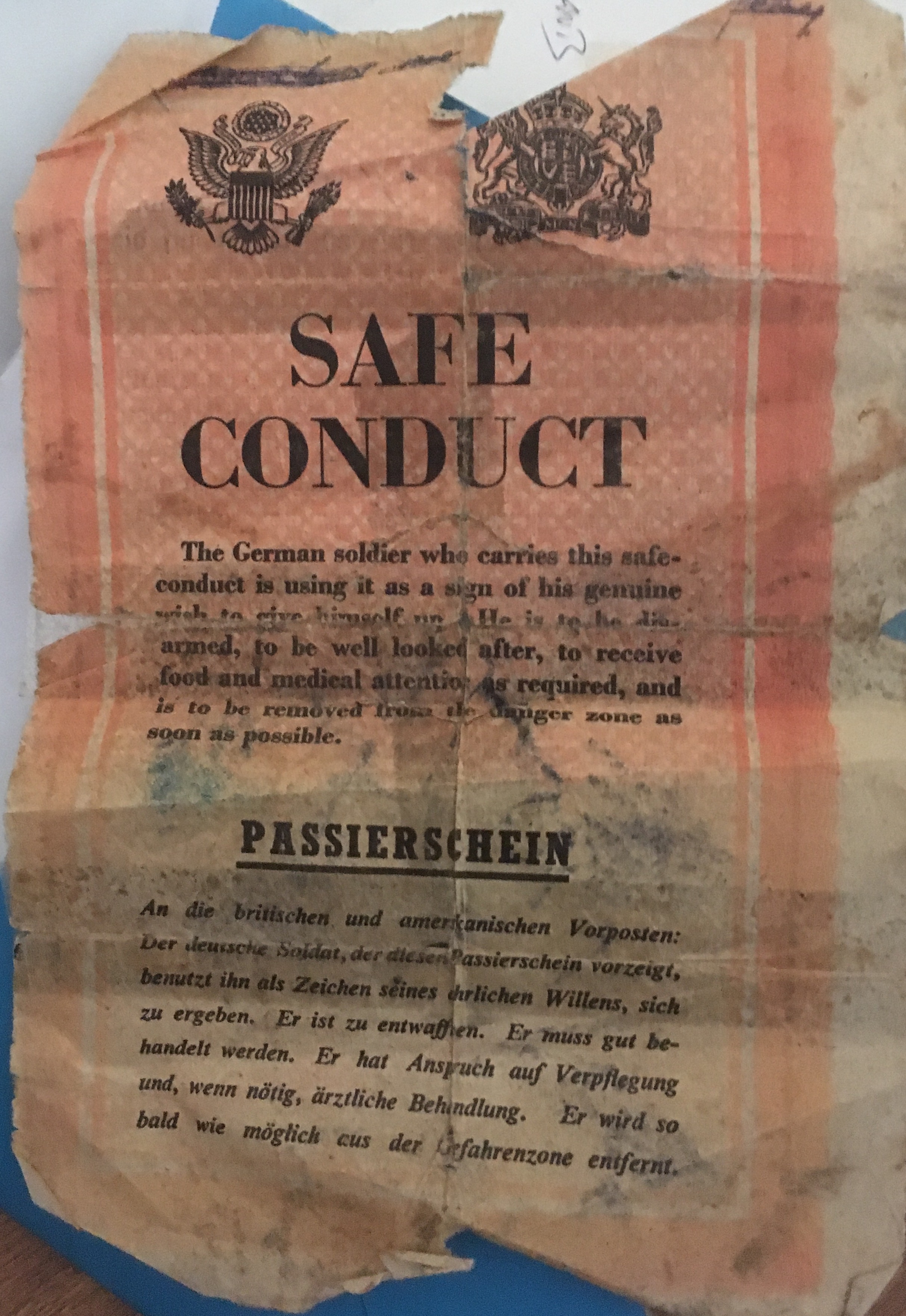 safe conduct paper German soldier ww2