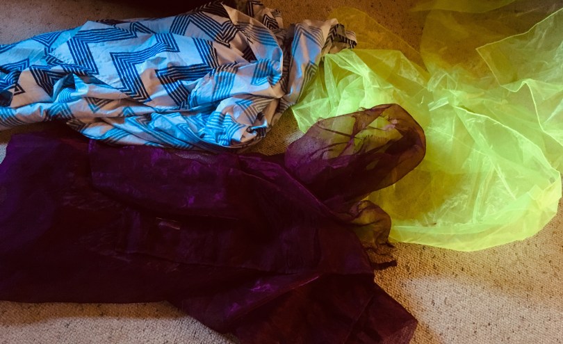 drapes and sheets $3.99 each from Goodwill were perfect for creating dresses and cloaks