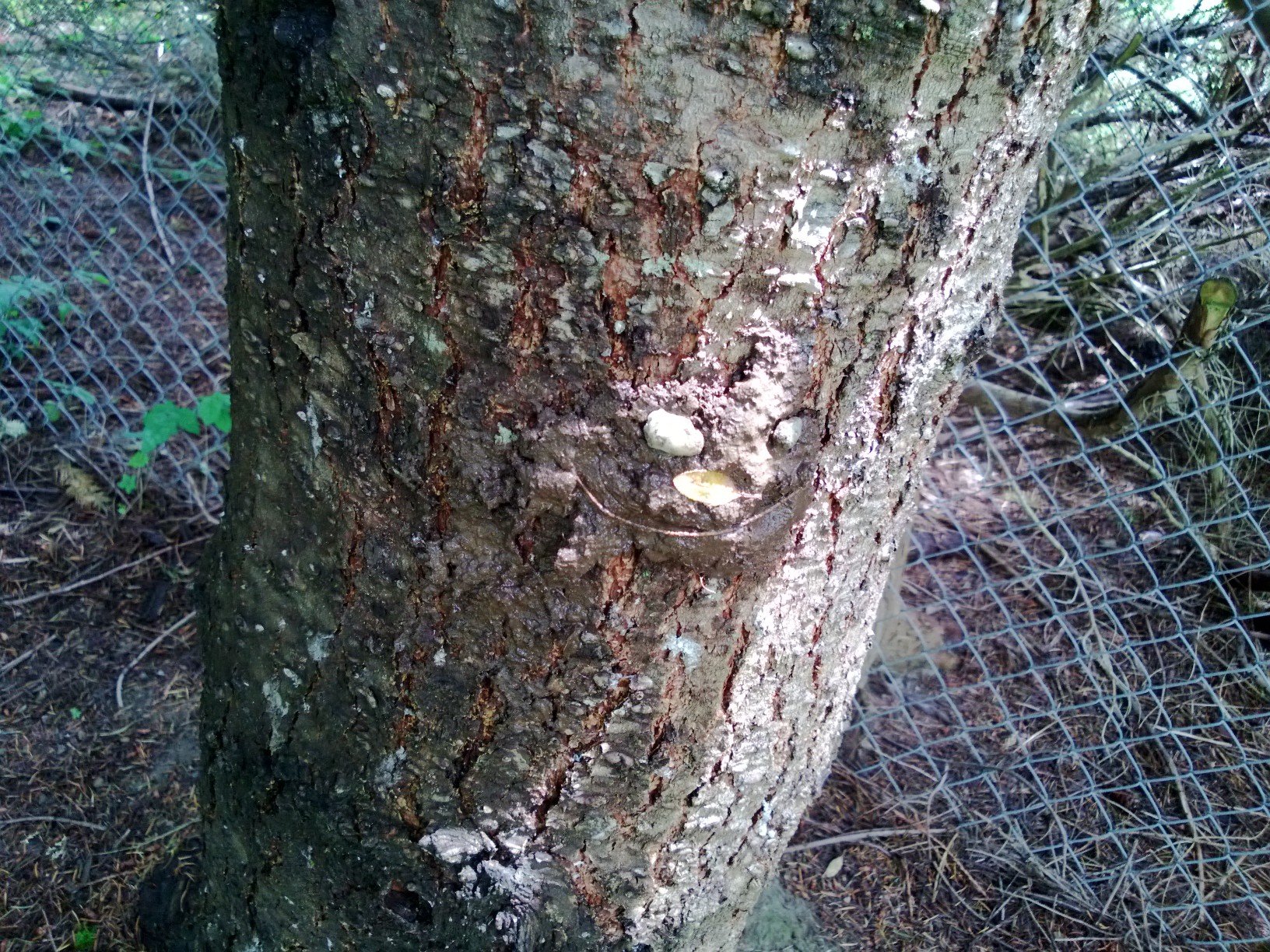 mud face on a tree.