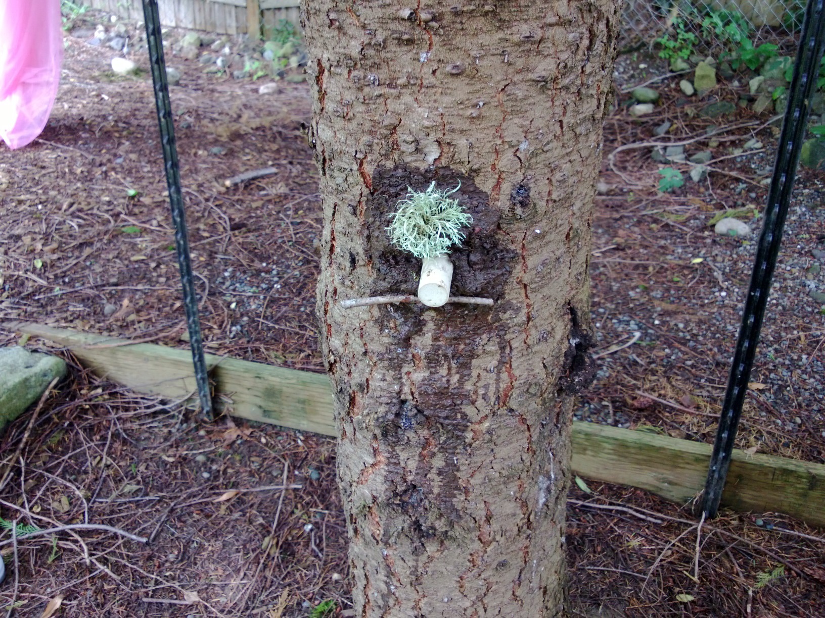 mud face on a tree.
