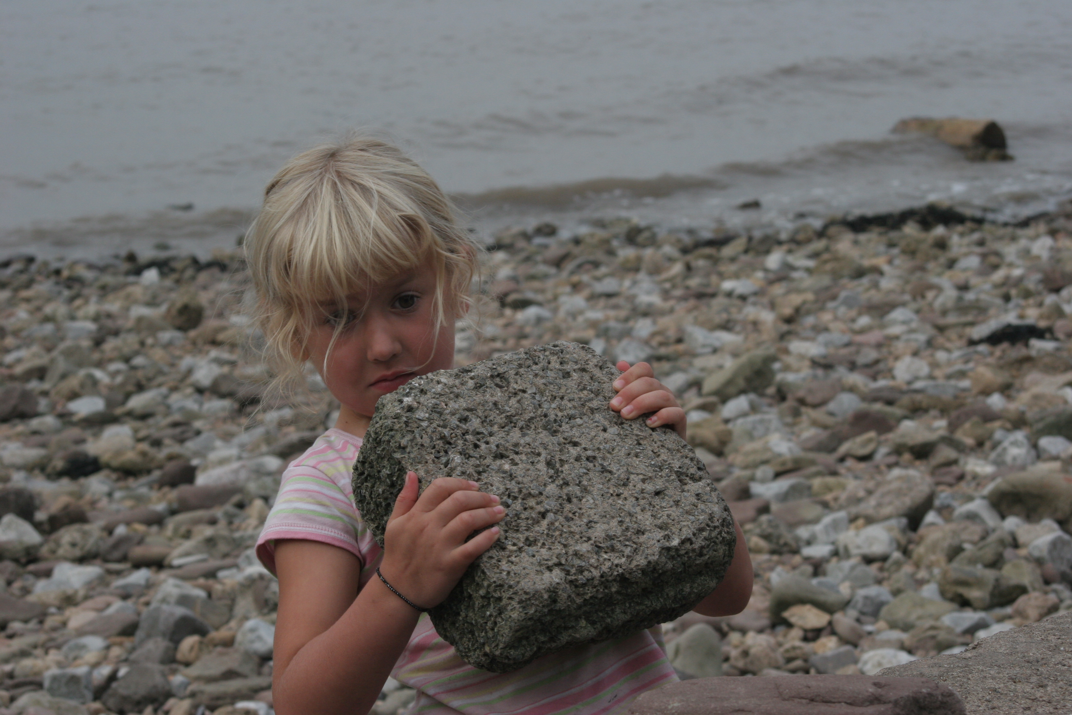 Carrying a rock to build a boat on the beach (the family were sailing). Moving heavy objects around was a key part of the play.